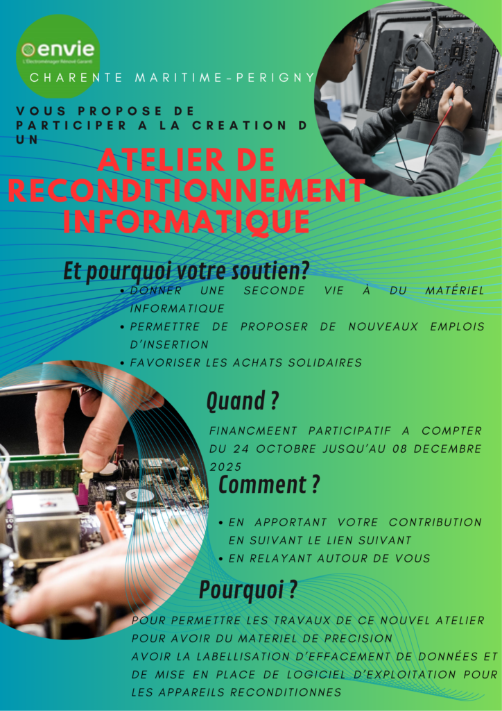 L’association Envie Charente-Maritime propose de donner une seconde vie à des équipements informatique en créant des emplois locaux.